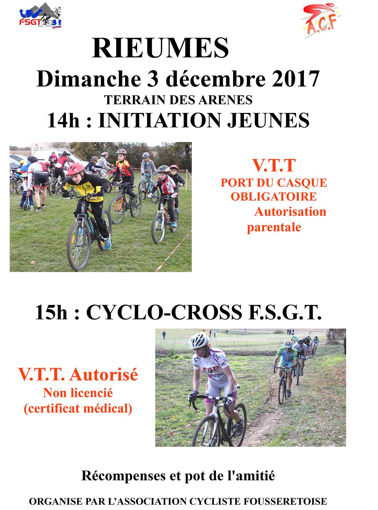 CYCLO CROSS de Rieumes organisé par le Club du Fousseret dimanche 3 décembre.