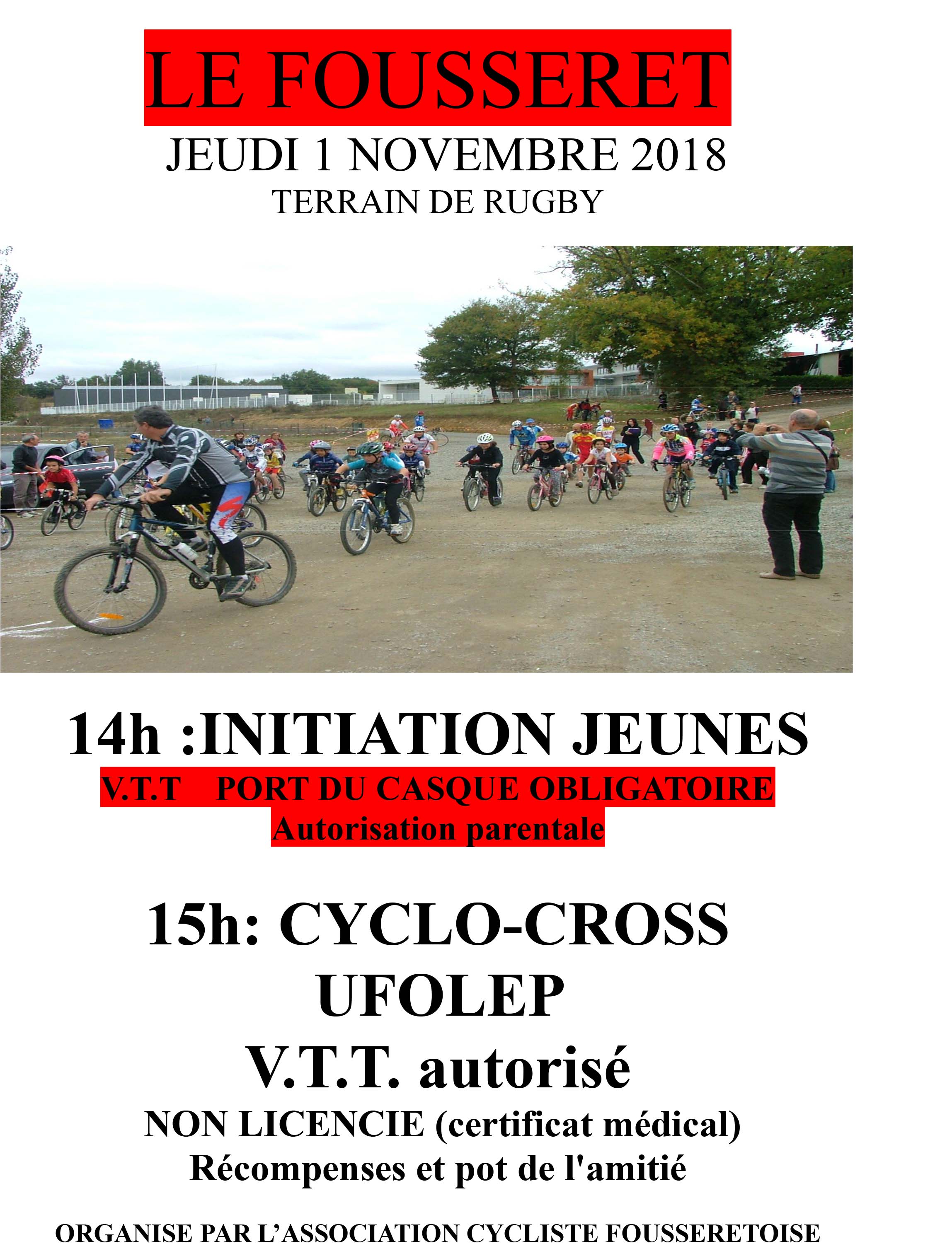 Nos amis du Fousseret et sous l'égide de l'UFOLEP nous invite à leur cyclo cross du jeudi 1er novembre.