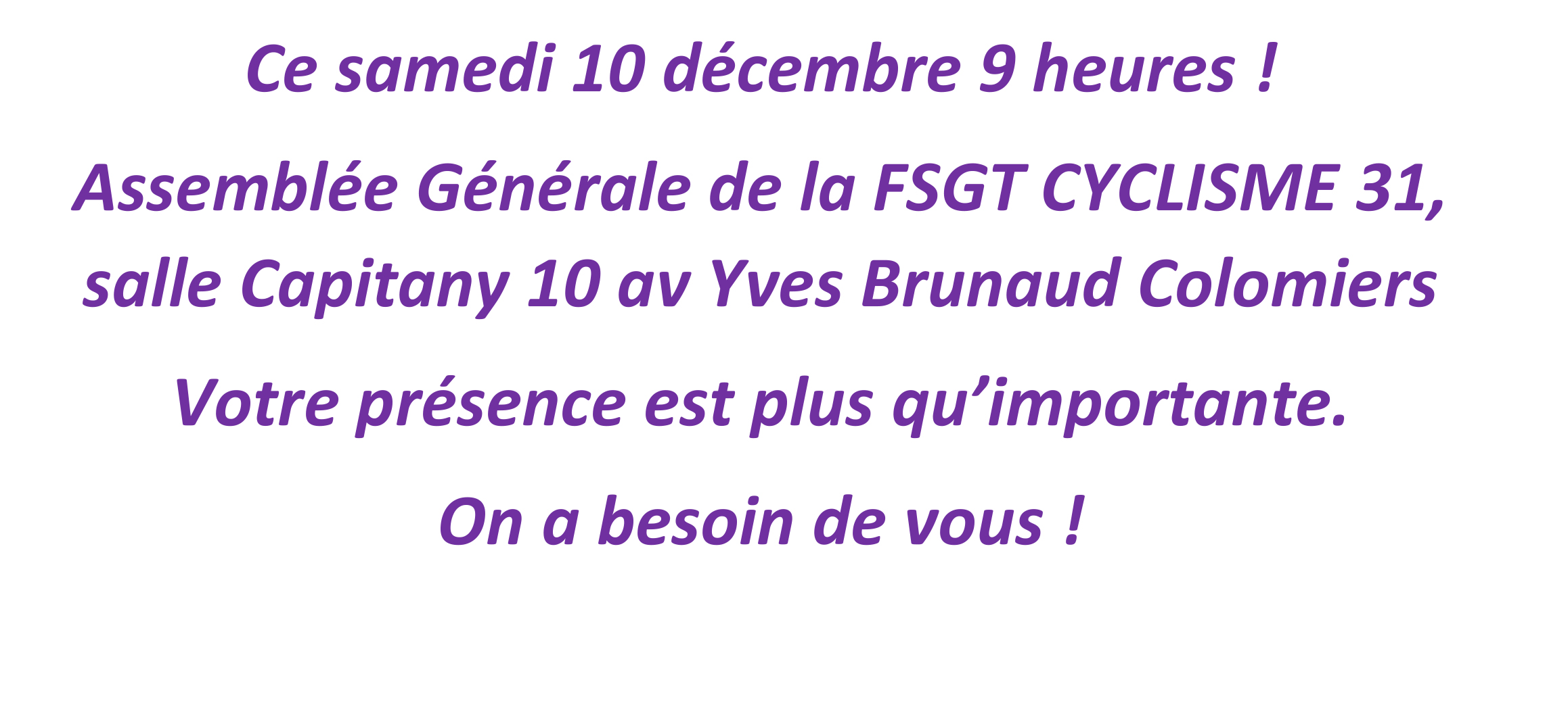AG 2022 de nos activités vélos de la FSGT CYCLISME Haute-Garonne, complexe sportif CAPITANY.