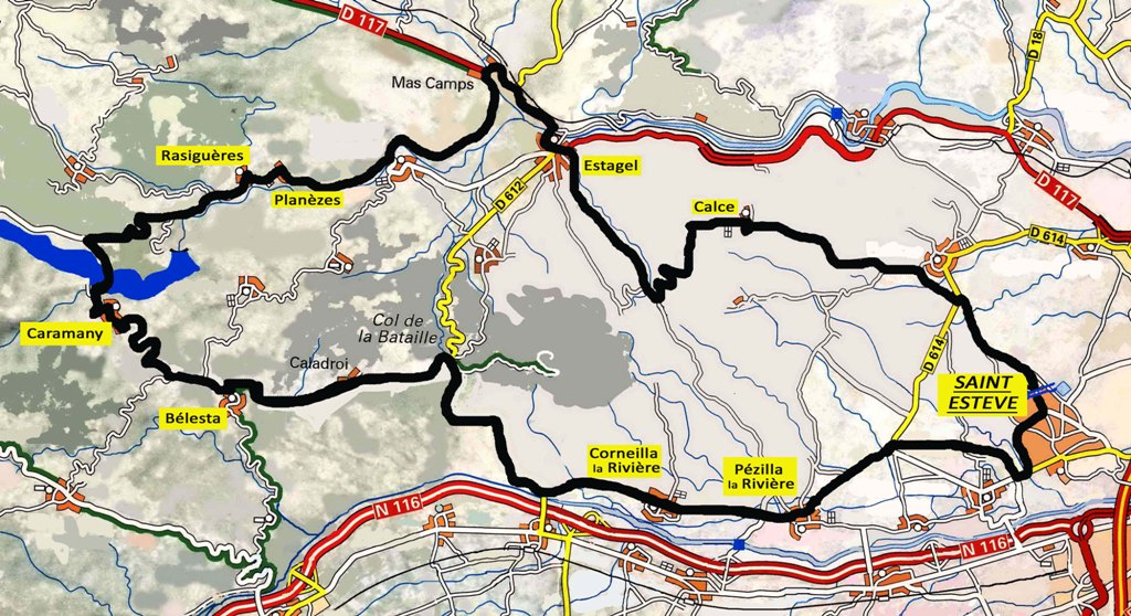 Saint-Estève toujours dans la course cycliste, avec en 2023 départ et arrivée dans la commune. Débutée en plaine du Roussillon, l'épreuve va chercher deux grimpées, avec le col de Bélesta (altitude 406 m) et la montée de Calce (altitude 235 m). Long de 71,5 km ce Saint-Estève / Saint-Estève, se différencie des autres Courses au Soleil de ce mois de février, par ces difficultés peu périlleuses, qui doivent apporter des solutions aux mieux préparés.