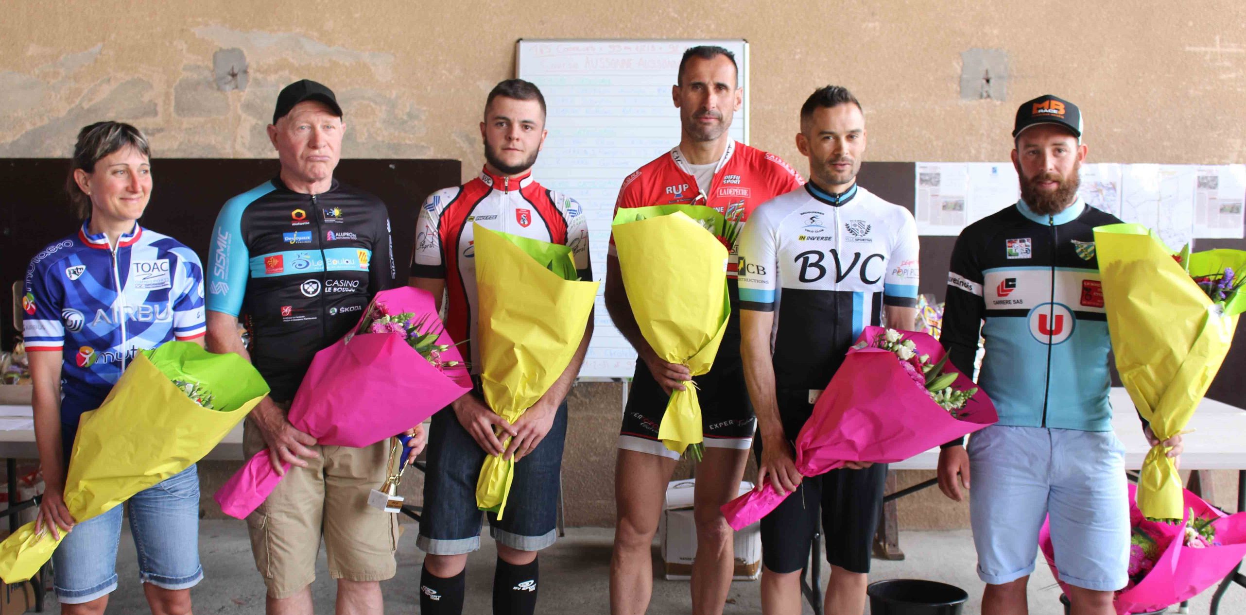 Les vainqueurs du jour : Christelle VICTOR, Alain GADENNE, Simon VERGNES, Olivier DELMAS, Christophe JACQUES DIT CHERTREAU, Guillaume GROSLIER