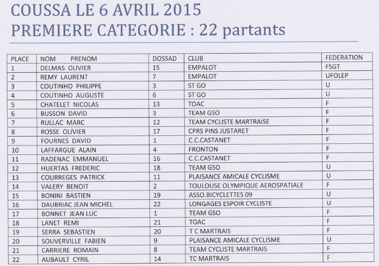 1 DELMAS Olivier 15 Empalot Vélo Club