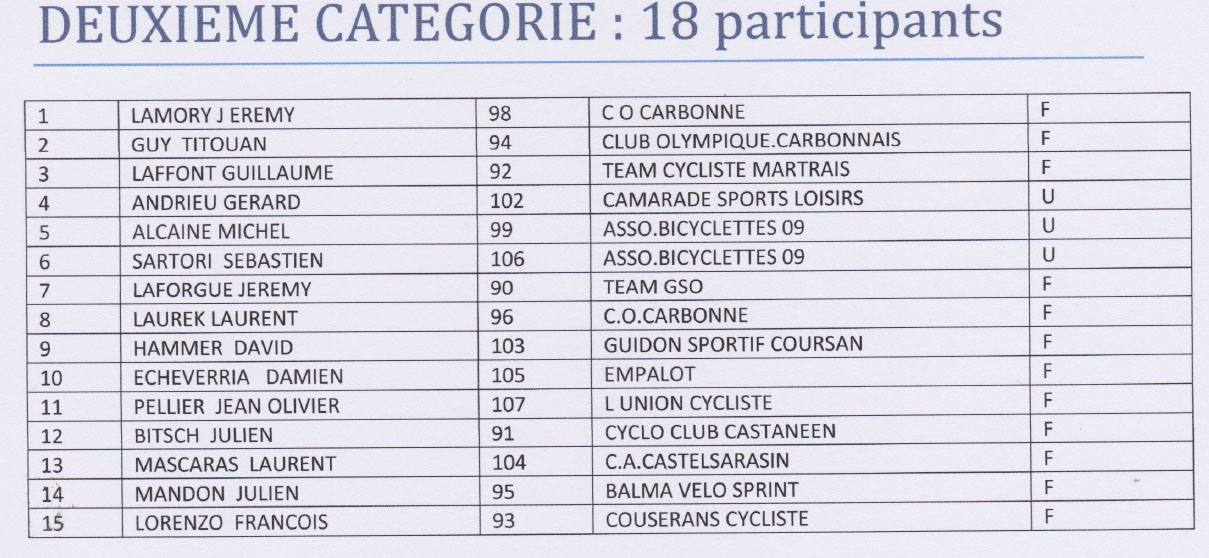 2eme catégorie: 18 partants