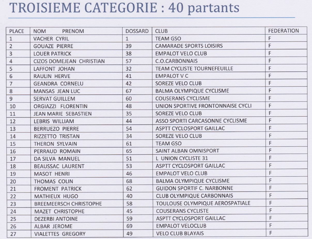 3eme catégorie: 40 partants