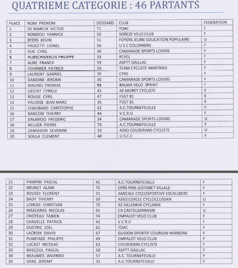 4eme catégorie: 46 partants