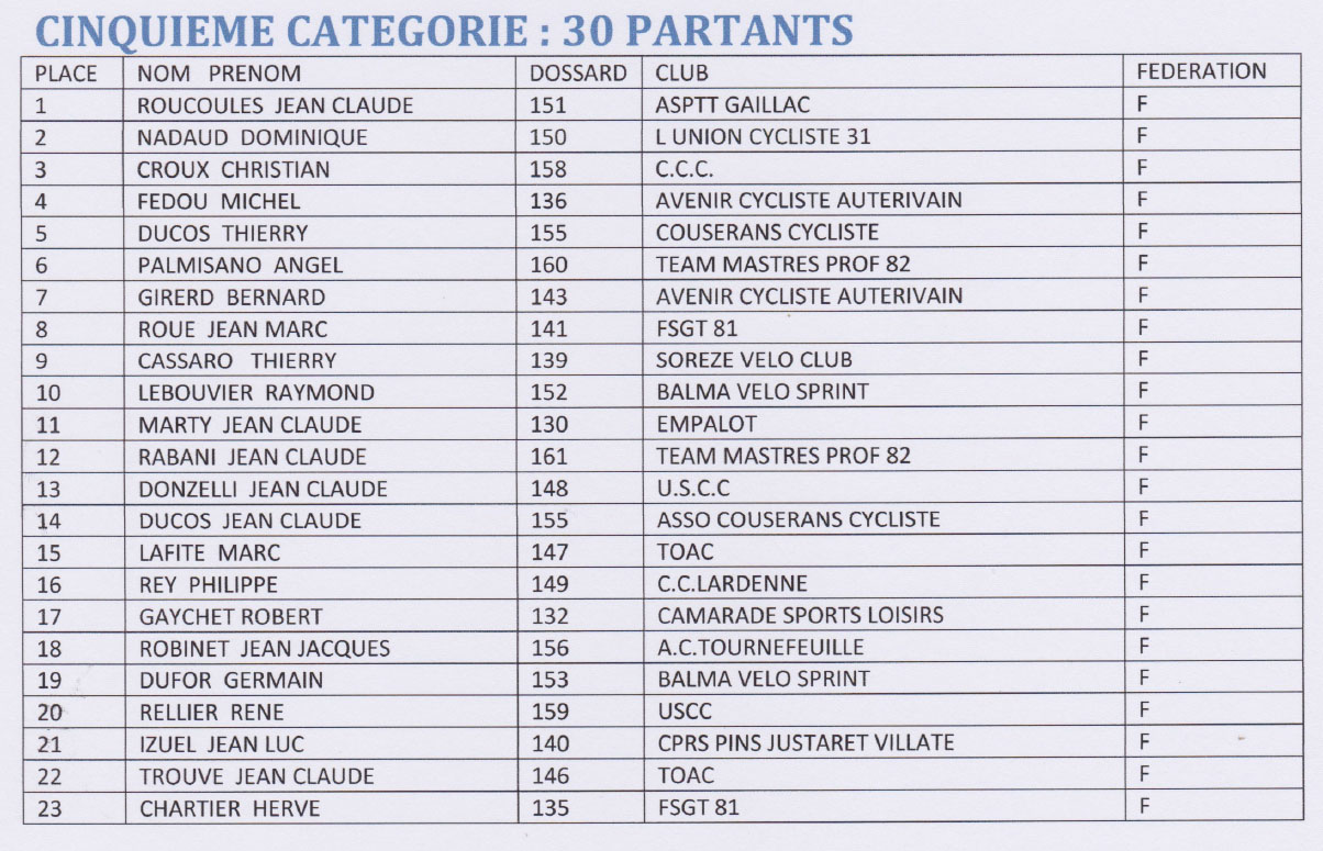 5eme catégorie: 30 partants